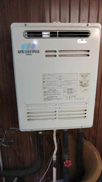 既設の長府製作所製の給湯器 GFK-2401PKA から、パロマ製の給湯器 FH-2023SAWL への取替でした。