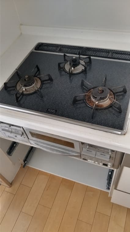 リンナイ製のビルトインコンロから、同じくリンナイ製の Lisse(リッセ) RHS31W32L24RSTW への取替でした。