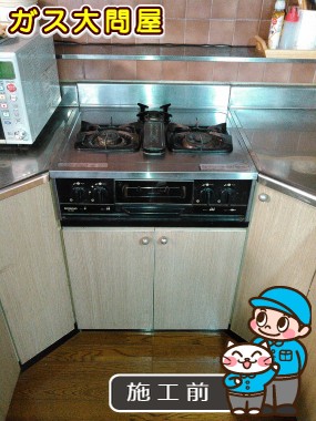 既設が単体キッチンとキャビネット型コンロだったので、ビルトインコンロ用キャビネット(Paloma:PDC-610W-1)に入れ替え、ビルトインコンロに入れ替えました。
