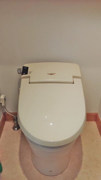 以前のリクシル製のタンクレストイレ サティス から、現行のリクシル製のトイレ アメージュ への取替でした。