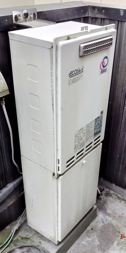 既設のパーパス製のエコジョーズ給湯器 GS-S2000W-1 から、パロマ製の給湯器 PH-2015AW への取替でした。