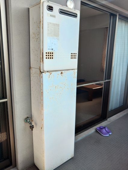 福岡県北九州市小倉南区の集合住宅にて、ガス給湯器の取替工事を行いました。