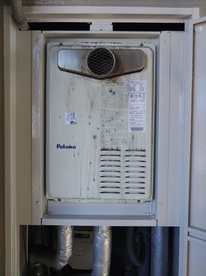 既設のパロマ製の給湯器 PH-203EW3 から、同じくパロマ製の給湯器 PH-2425AT への取替でした。