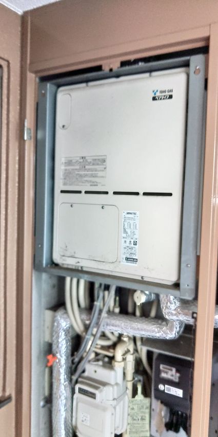 埼玉県さいたま市緑区の集合住宅にて、ガスふろ給湯器の取替工事を行いました。