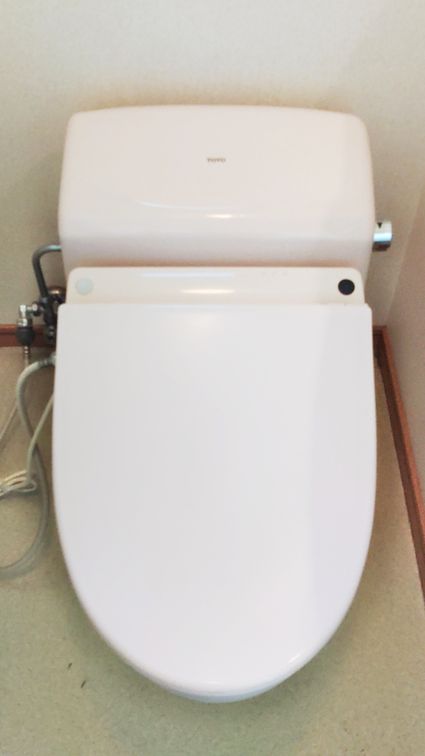 以前のTOTO製のトイレから、現行のTOTO製のウォシュレット一体形便器 GG1 への取替でした。