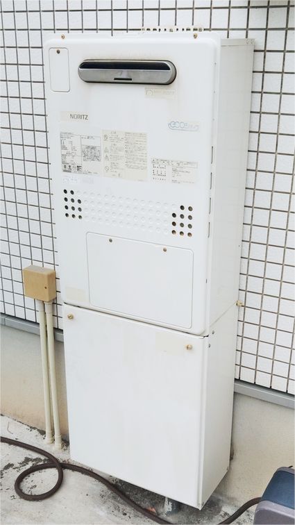 既設のノーリツ製の給湯器 GQ-2027AWX から、リンナイ製の給湯器 RUJ-A2010W(A) への取替でした。