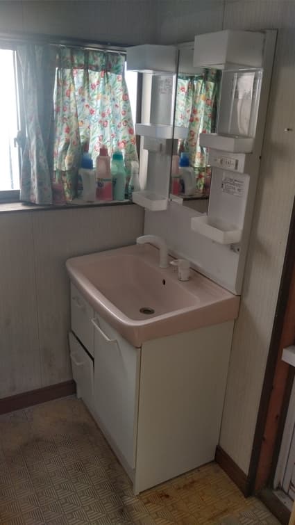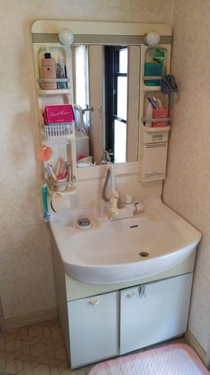 三重県鈴鹿市にお住まいのお客様宅にて、洗面化粧台を交換致しました。