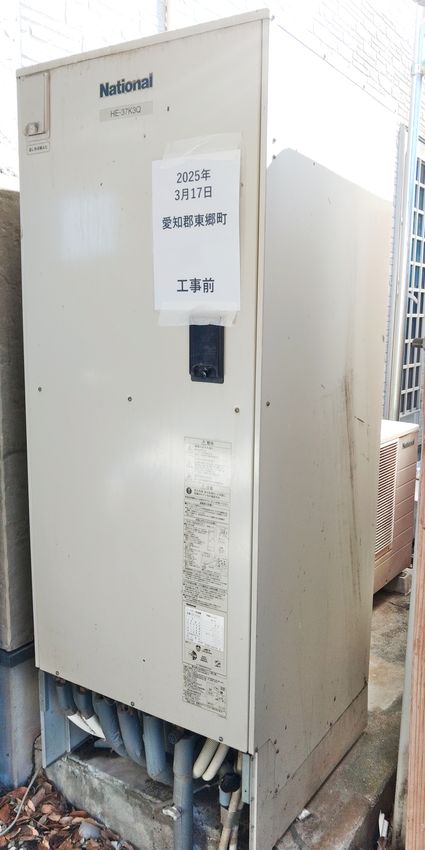 以前のパナソニック製のエコキュートから、現行のパナソニック製のエコキュート HE-S37LQS への取替でした。