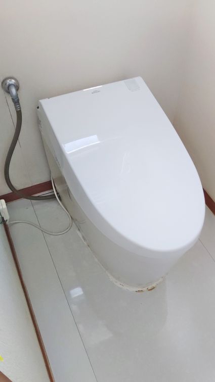 既設のTOTO製のトイレから、パナソニック製のタンクレストイレ アラウーノ S160シリーズ への取替でした。