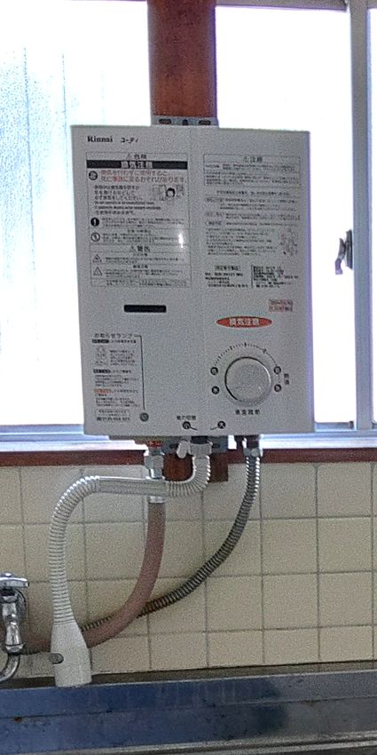 既設のリンナイ製のガス瞬間湯沸かし器から、パロマ製のガス瞬間湯沸かし器 PH-5BV への取替でした。