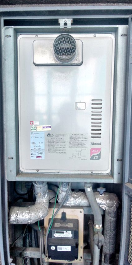 既設のノーリツ製の給湯器 GT-2027SAWX から、パロマ製の給湯器 FH-2023SAWL への取替でした。