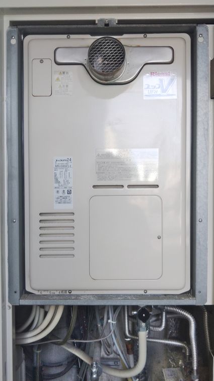 既設のノーリツ製のエコジョーズ給湯器 GT-C2452ARX-2 から、パロマ製のエコジョーズ給湯器 FH-E2422FARL への取替でした。