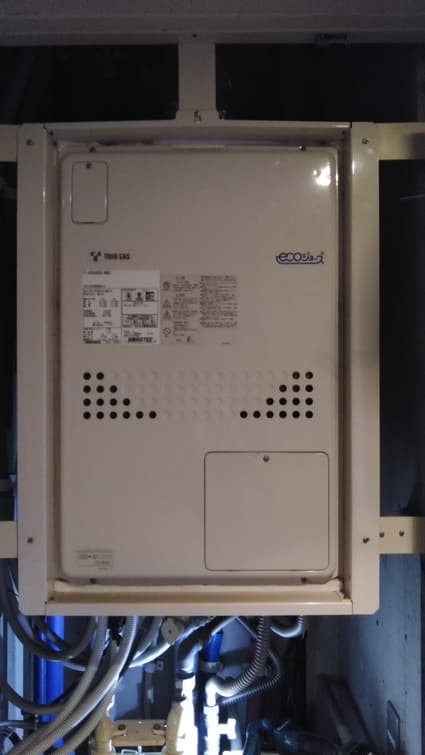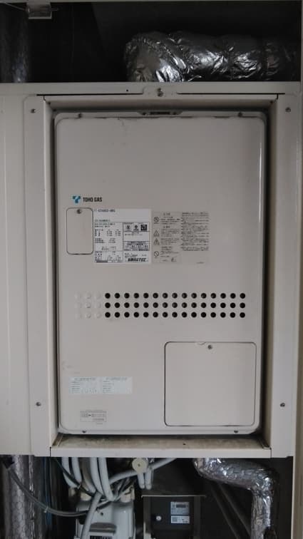 東京都板橋区の集合住宅にて、ガス給湯器の取替工事を行いました。