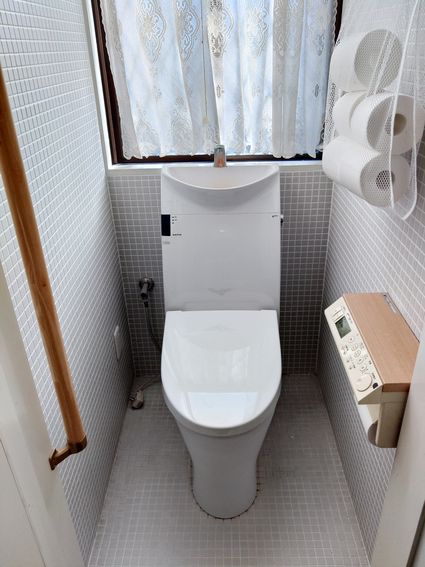 以前のINAX製のタンクレストイレ サティス から、現行のリクシル製のトイレ アメージュ への取替でした。
