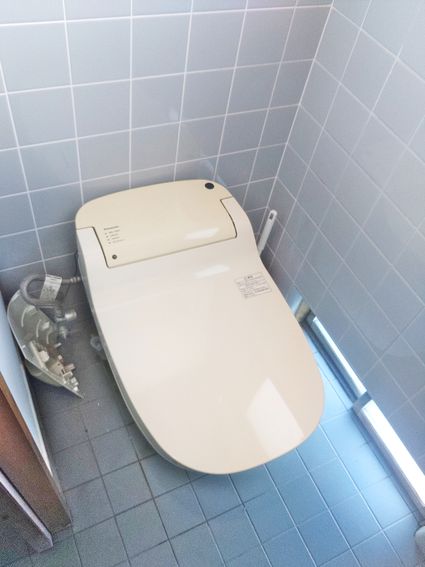 既設のTOTO製のトイレから、パナソニック製のタンクレストイレ アラウーノ S160シリーズ への取替でした。