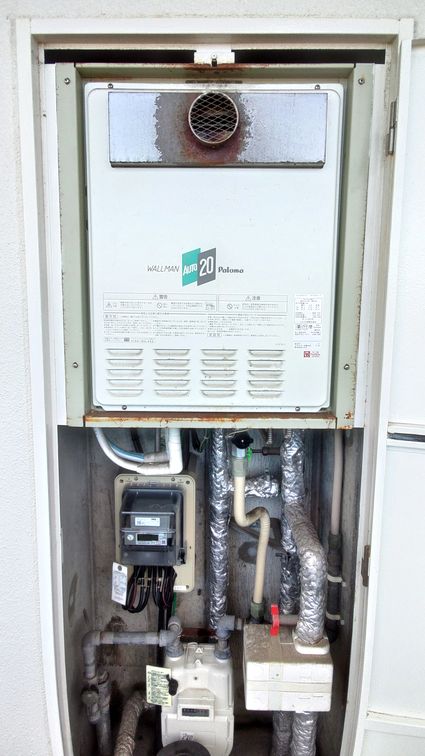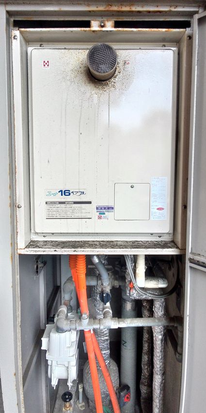 福岡県福岡市西区の集合住宅にて、ガスふろ給湯器の取替工事を行いました。