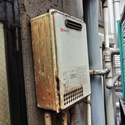 東京都北区の集合住宅にて、ガス給湯器の取替工事を行いました。
