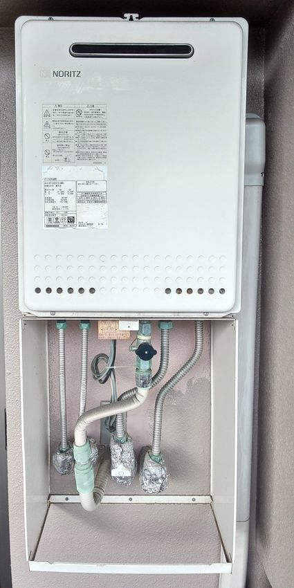 以前のノーリツ製の給湯器 GT-2422AWX から、現行のノーリツ製の給湯器 GT-2470SAW BL への取替でした。