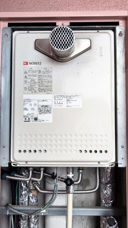 以前のノーリツ製の給湯器 GT-2412SAWX-T から、現行のノーリツ製の給湯器 GT-2470SAW-T BL への取替でした。
