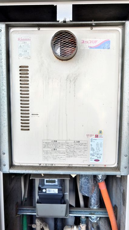 既設のノーリツ製の給湯器から、リクシル製の給湯器 RUF-A2005SAT(C) への取替でした。