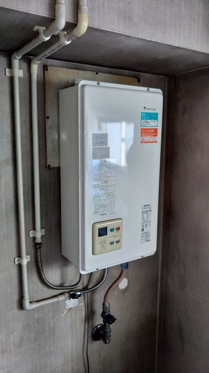東京都杉並区の集合住宅にて、ガス給湯器の取替工事を行いました。