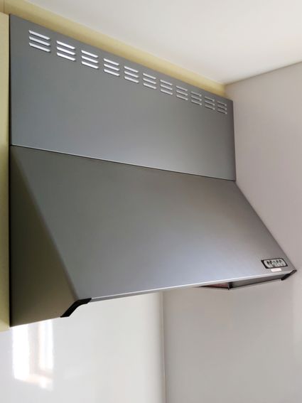 既設のブーツ型レンジフードから、リンナイのスリム型レンジフード TLR-3S-AP902SV への取替でした。