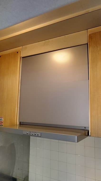 岡山県倉敷市の集合住宅にて、レンジフードの取替工事を行いました。