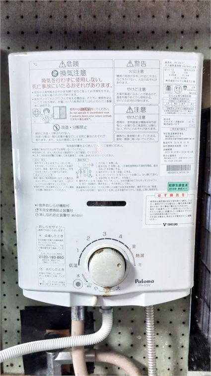 既設のパロマ製のガス瞬間湯沸かし器 PH-55V から、リンナイ製のガス瞬間湯沸かし器 RUS-V51YTB(WH) への取替でした。