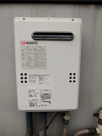 以前のノーリツ製の給湯器 GQ-2039WS から、現行のノーリツ製の給湯器 GQ-2039WS-1 への取替でした。