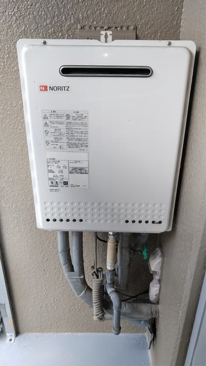 以前のノーリツ製の給湯器 GT-2028AWX から、現行のノーリツ製の給湯器 GT-2070AW BL への取替でした。