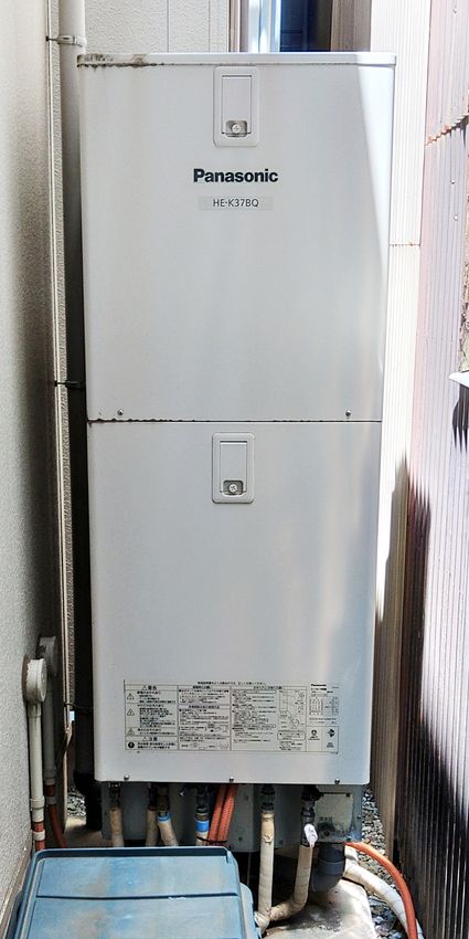 以前のパナソニック製のエコキュート HE-K37BQS から、現行のパナソニック製のエコキュート HE-S46LQS への取替でした。