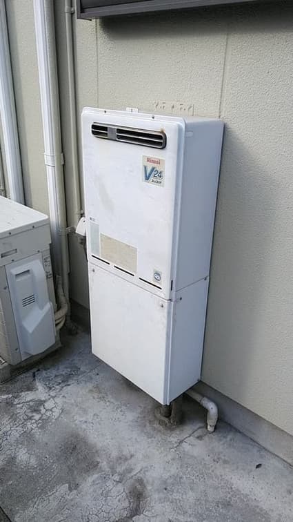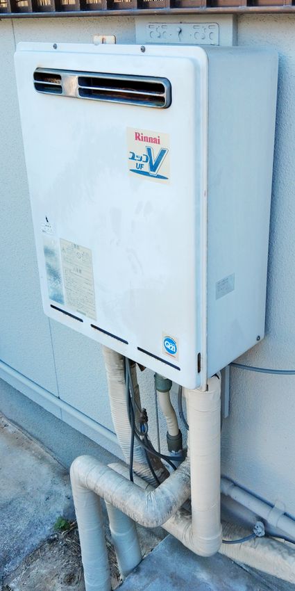 以前のリンナイ製の給湯器 RUF-V2401SAW から、現行のリンナイ製のエコジョーズ給湯器 RUF-E2406SAW(A) への取替でした。