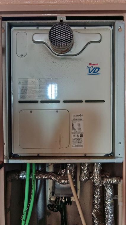 以前のリンナイ製の給湯器 RVD-A2400SAT から、現行のリンナイ製の給湯器 RVD-A2400SAT(B) への取替でした。