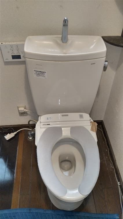 以前のTOTO製のトイレから、現行のTOTO製のウォシュレット一体形便器 ZR1 への取替でした。
