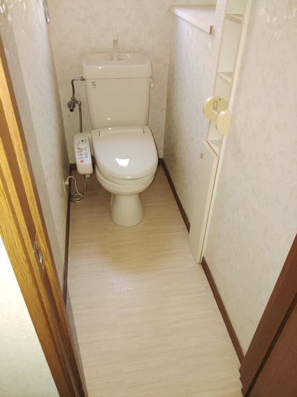 壁紙やクッションフロアの貼り替え、紙巻器の取付など、トイレの内装工事も行いました。