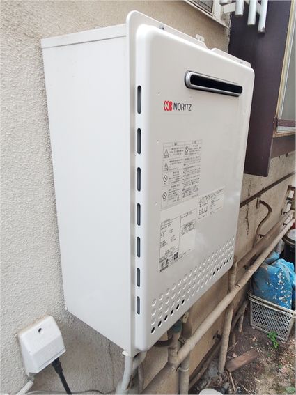 埼玉県鶴ヶ島市の一戸建て住宅にて、ガス給湯器の取替工事を行いました。