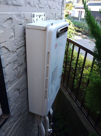 東京都江戸川区の集合住宅にて、ガス給湯器の取替工事を行いました。