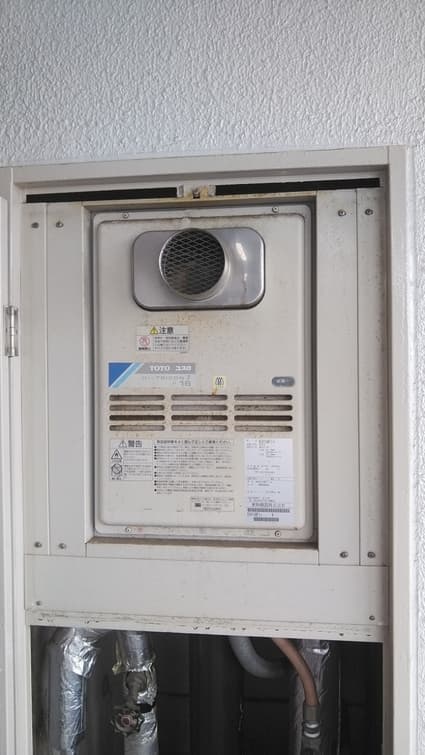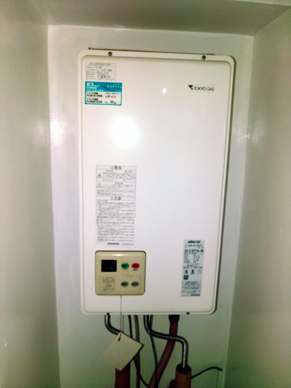 東京都墨田区の集合住宅にて、ガス給湯器の取替工事を行いました。