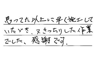 思ってた以上に早く施工していただき、又きっちりした作業でした。感謝です。