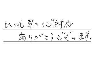 先日はありがとうございました。最後まで丁寧に作業をしていただき、また状況説明も大変わかりやすく、安心を得ることができました。
