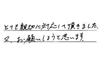 とても親切に対応して頂きました。又、お願いしようと思います。