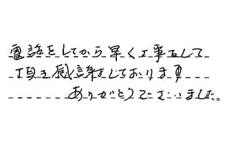 電話をしてから早く工事をして頂き感謝しております。ありがとうございました。