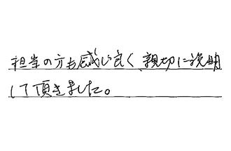 見積りに来てくれると言う日が、数日先だったので、大問屋さんにお願いしたところ、敏速に対応していただいたので、大問屋さんに決めました。工事も手際良く、感じも良くて、満足でした。ありがとうございました。
