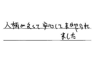 対応・仕事ともにていねいにして頂きました。ありがとうございました。