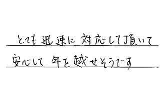 とても迅速に対応して頂いて、安心して年を越せそうです。