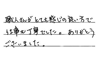 手慣れた手つきで仕上げもキレイで、満足しています。ついでに換気扇などの見積りもお願いしました。