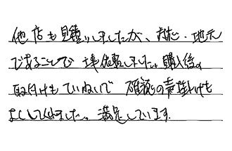 他店も見積りしましたが、対応・地元であることで、工事依頼しました。購入後の取付けもていねいで、確認の声掛けもよくしてくれました。満足しています。