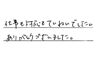 突然ガスが使えなくなり、お電話させてもらいました。すぐに来て下さり、対応してもらいました。すぐに給湯器の手配もして、工事となりました。親切・丁寧な対応で、本当に助かりました。