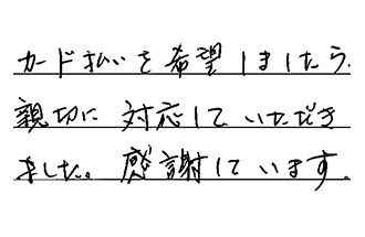 カード払いを希望しましたら、親切に対応していただきました。感謝しています。