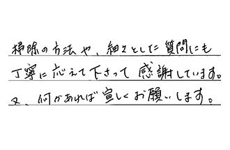 見積りの対応、プラス工事もていねいにしていただき、ありがとうございます。とても満足しています。